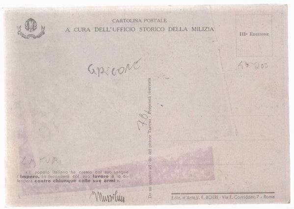 A cura dell'ufficio storico della milizia fascista. Non viaggiata. Edizione d'arte V.E. Boeri - Roma. Buono stato.
