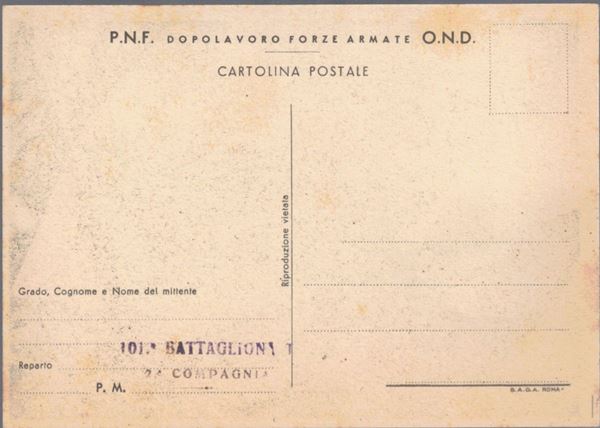 La Casa d'Aste Art La Rosa offre in vendita cartoline delle dittature della II Guerra Mondiale solo ai fini dell'educazione civica e della difesa contro atti incostituzionali o anti costituzionali, della ricerca storica, scientifica e storico militare. L'offerente si impegna ad acquistare tali opere per motivi storico scientifici e per quelli sopra citati e non per scopi propagandistici.