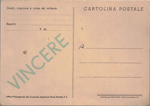 La Casa d'Aste Art La Rosa offre in vendita cartoline delle dittature della II Guerra Mondiale solo ai fini dell'educazione civica e della difesa contro atti incostituzionali o anti costituzionali, della ricerca storica, scientifica e storico militare. L'offerente si impegna ad acquistare tali opere per motivi storico scientifici e per quelli sopra citati e non per scopi propagandistici.
