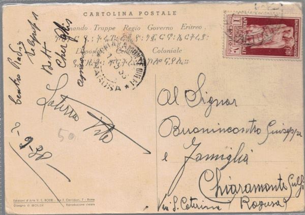 La Casa d'Aste Art La Rosa offre in vendita cartoline delle dittature della II Guerra Mondiale solo ai fini dell'educazione civica e della difesa contro atti incostituzionali o anti costituzionali, della ricerca storica, scientifica e storico militare. L'offerente si impegna ad acquistare tali opere per motivi storico scientifici e per quelli sopra citati e non per scopi propagandistici.