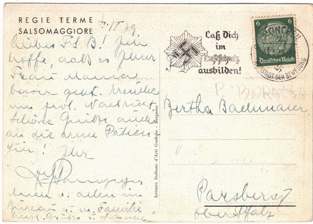 Centenario delle cure 15/06/1939. Viaggiata 1939 dalla Germania.