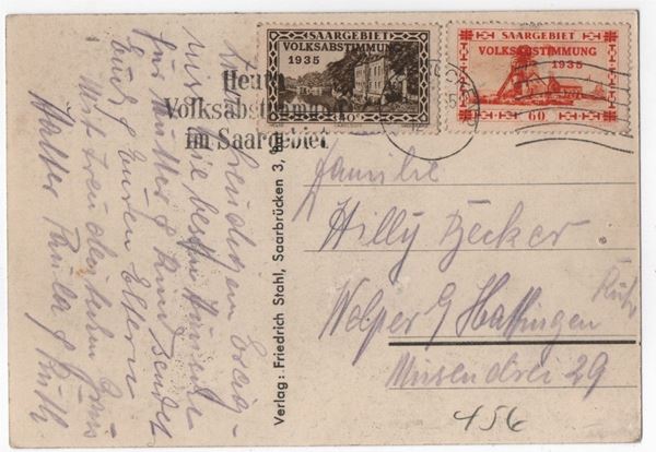 Cartolina rara 13 gennaio 1935 "la saar resta tedesca"