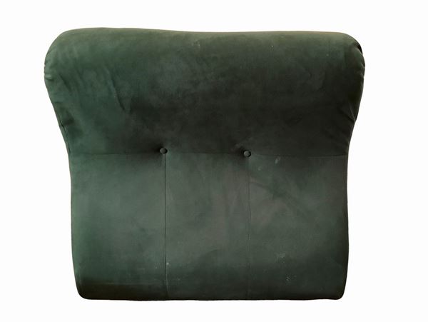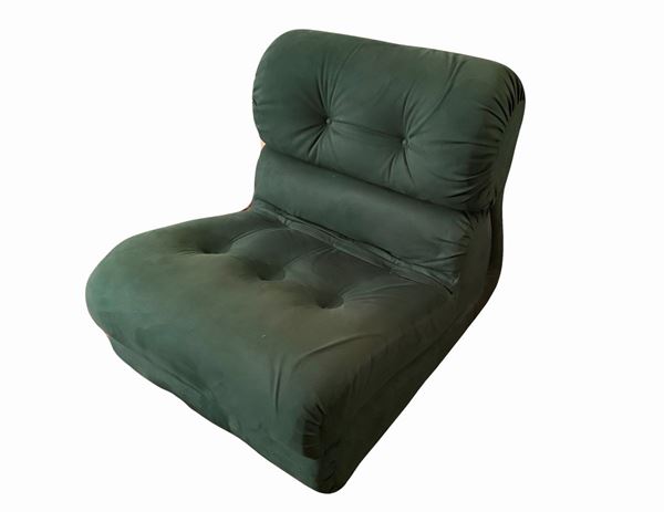 Produzione italiana nell stile di Mimo Padova, struttura in legno, rivestimento in tessuto nei toni del verde. Segni di uso