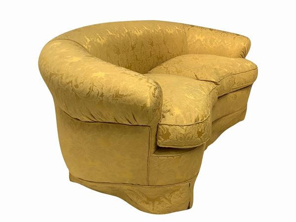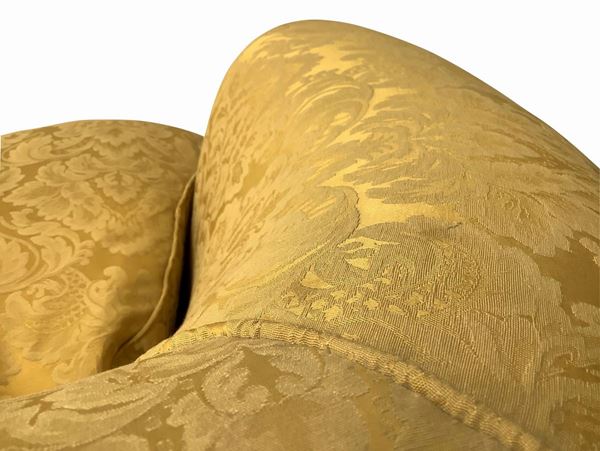 Con struttura in legno, rivestimento in tessuto e piedi in legno.