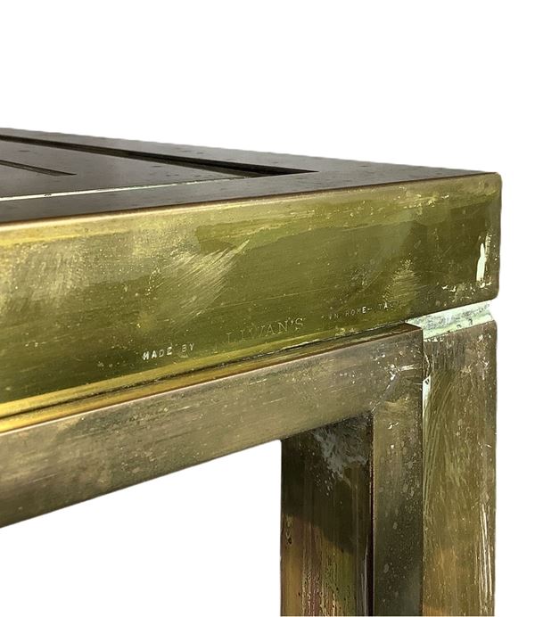 Rilievi geometrici, struttura e superficie interamente in ottone, doppia cornice. Segni d'uso. Roma, Italia.