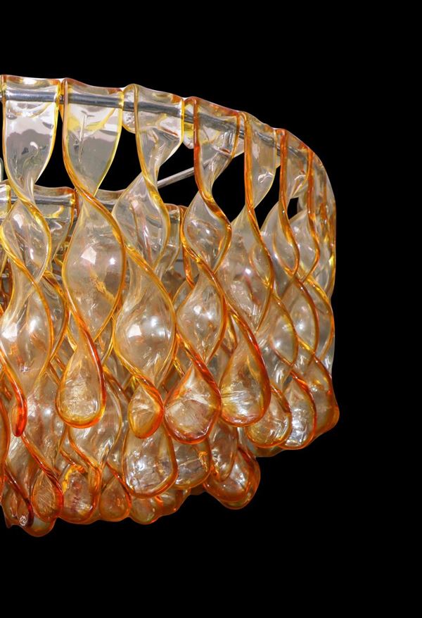 Di forma circolare ed elementi in vetro torchon trasparente con finitura lungo i bordi nei toni dell'ambra.