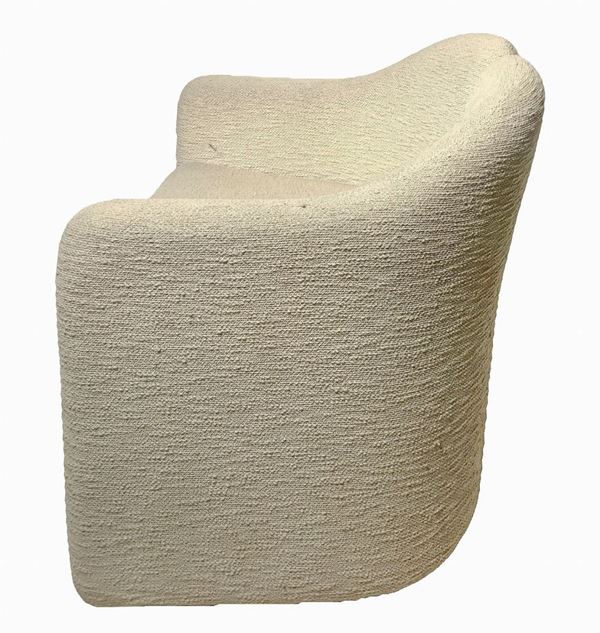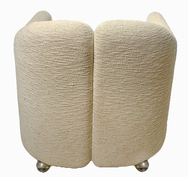 Con struttura in metallo, rivestimento nei toni del beige con tramature bouclet.