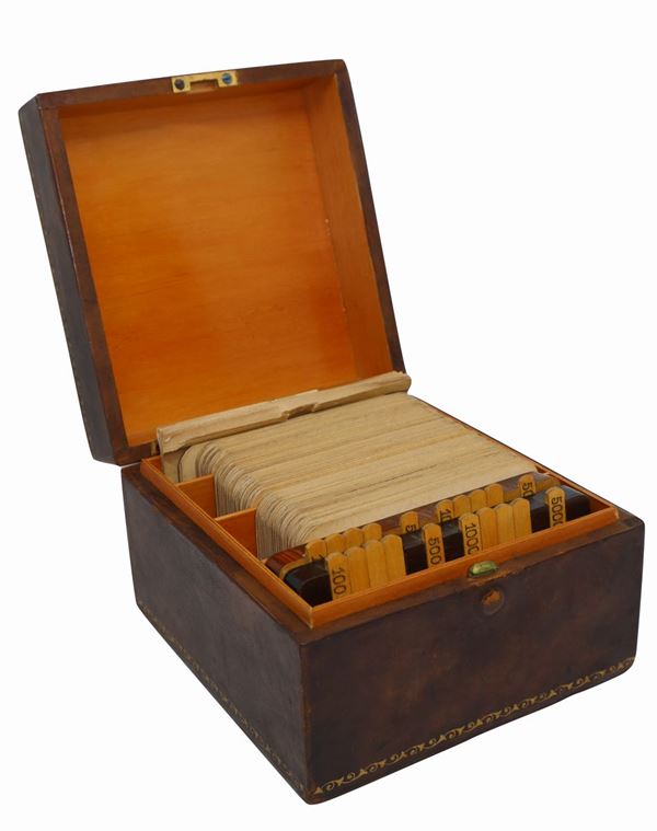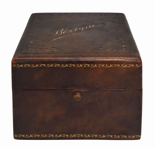 Scatola vintage in pelle Bezique carte C, Titz & Schinkay Wien