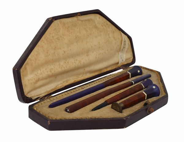 Antico set in scatola a 4 pezzi, Fine XIX Secolo