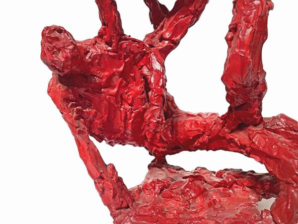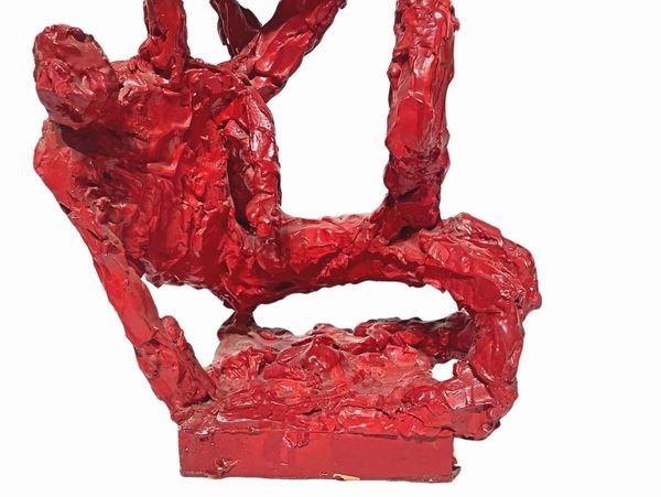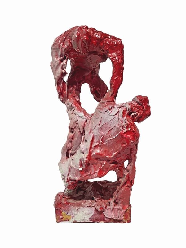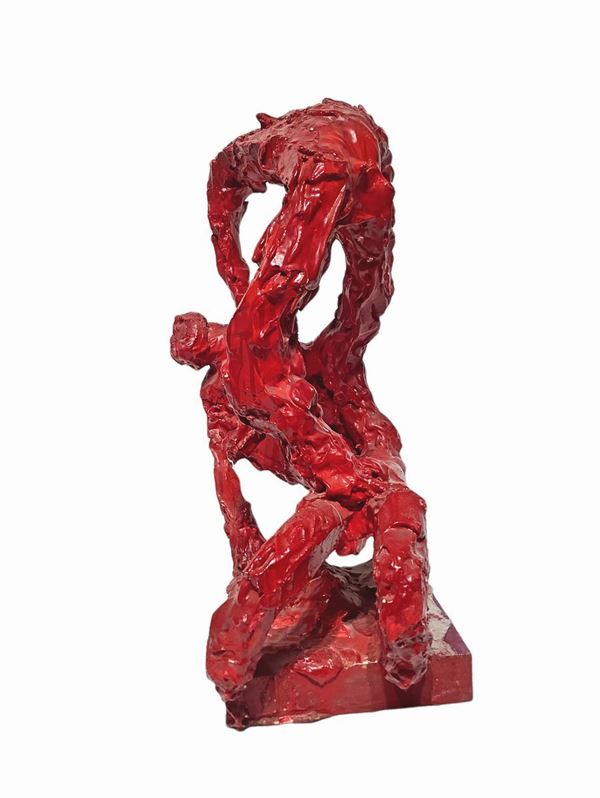 Scultura in pasta bianca laccata nei toni del rosso