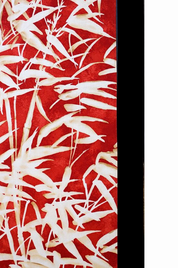 Pannello in tela raffigurante steli di bamboo su fondo rosso