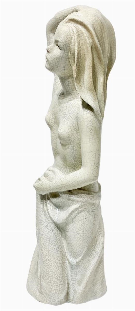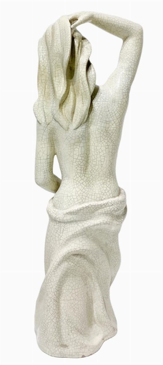 Grande scultura in pasta bianca con effetto craquele raffigurante. Firmato sulla base Le Bertetti Torino Italia, Emanuela n° 80.