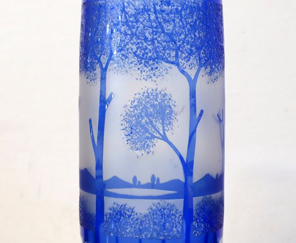 Decorato all'acido con paesaggi ed alberi nei toni del blu