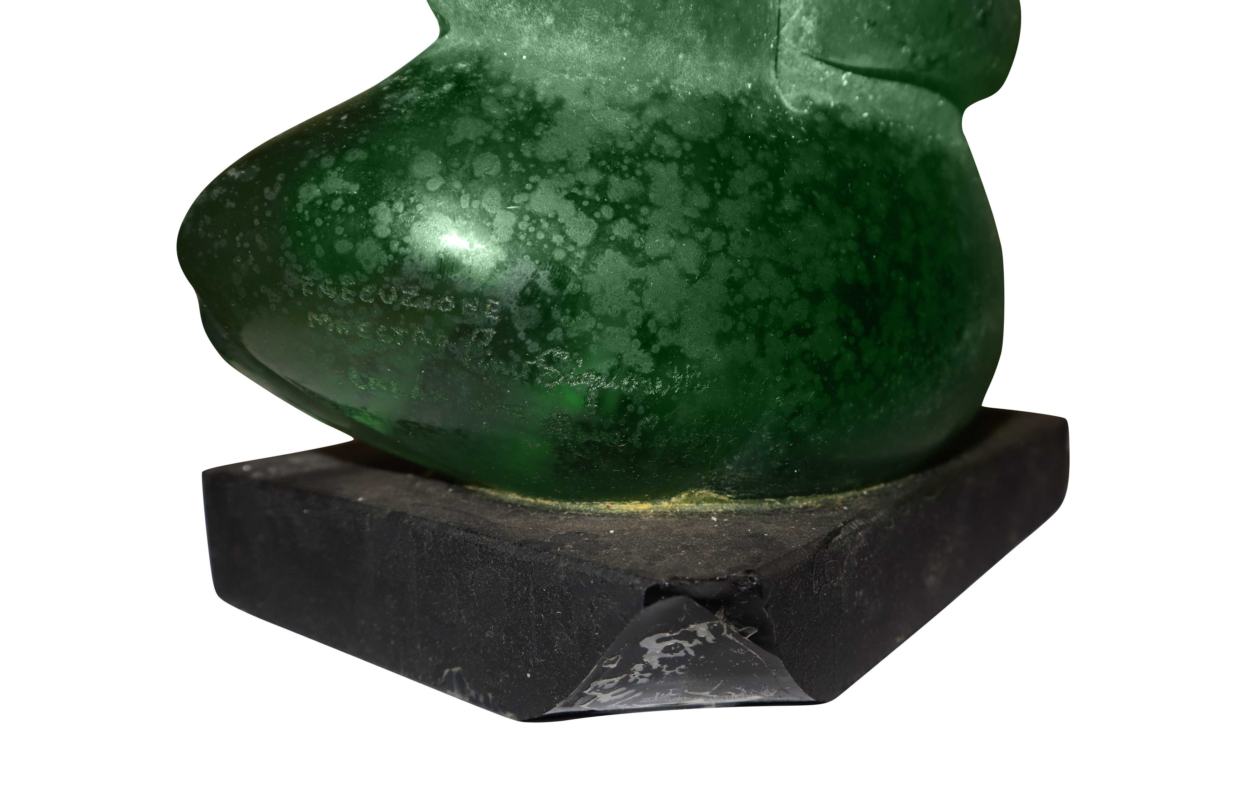 Scultura ritraente saggio orientale in vetro di murano firmato sul retro in basso a sinistra, base in vetro nero assoluto. Provenienza Famiglia Paternò Castello di Biscari.