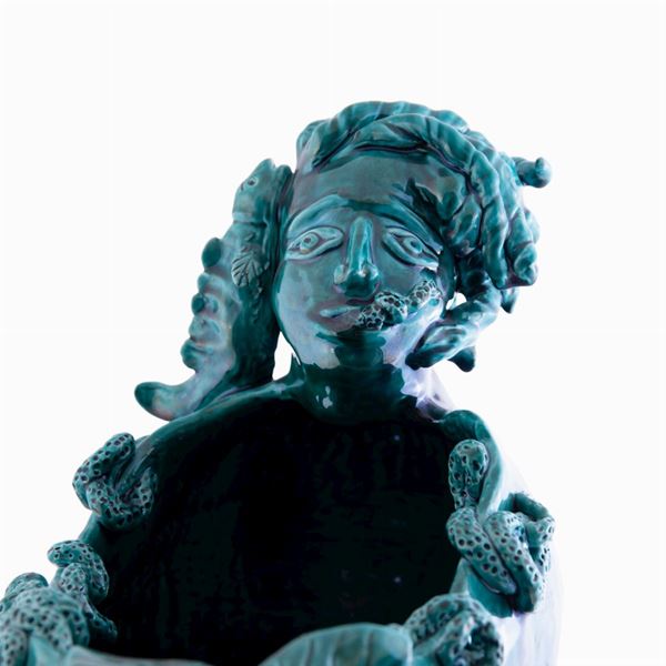 Patrizia Italiano è un artista artigiana, vive in Sicilia tra Palermo e la sua Filicudi, fonte di ispirazione e di ricerca. La ceramica è la sua passione da sempre. Il lavoro manuale e la creatività la hanno accompagnata in ogni momento della vita. Da giovanissima ha esposto a Milano, New York, a Tokyo, negli Emirati Arabi ed in altri Paesi. Ha ricominciato a lavorare dopo un lungo periodo di inattività con nuove collezioni di sculture, teste, piatti e vasi raccontando della Sicilia in modo ironico e contemporaneo. Ogni oggetto è realizzato a mano, senza ausilio di stampi o presse. Lavora e modella con diverse tecniche ogni pezzo, in modo differente uno dall’altro. Tutte le ceramiche sono cotte a gran fuoco con smalti e ingobbi o cristalline che compone personalmente. La collezione dei “ venditori di Sicilia”, nasce per l’amore verso la sua città, Palermo , con i suoi mercati, i suoi odori, i suoi cibi intrisi da secoli di cultura e di storia. Mediterranea, nasce per il suo secondo amore: l’isola di Filicudi dove ha il suo cuore; con il mare, la terra rossa e l’azzurro declinato in tanti modi. Le “Scapiddate “ raccontano invece, donne controcorrente, i capelli in aria, ma i piedi ben piantati per terra. Ogni opera è unica e può avere piccole differenze. È stata selezionata tra gli artigiani più interessanti del mondo presenti nella guida Homo Faber, dalla Fondazione Michelangelo.