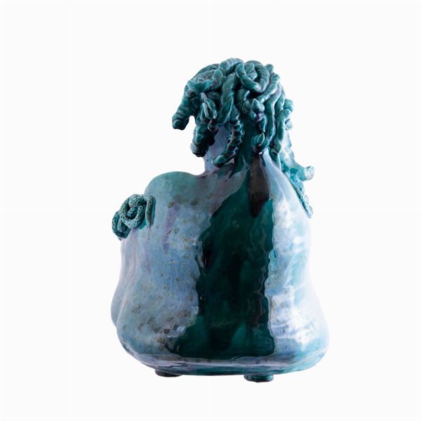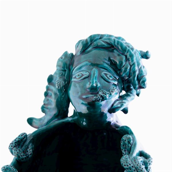 Scultura in ceramica con cristalline e colori.