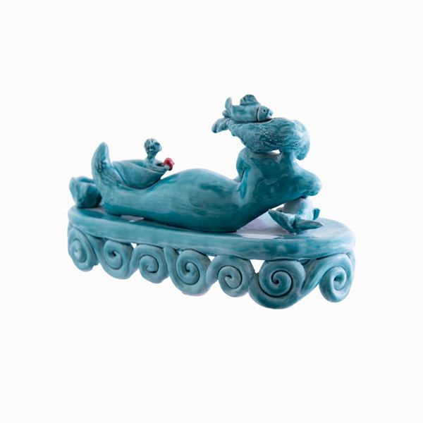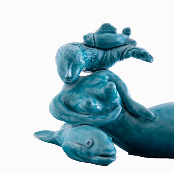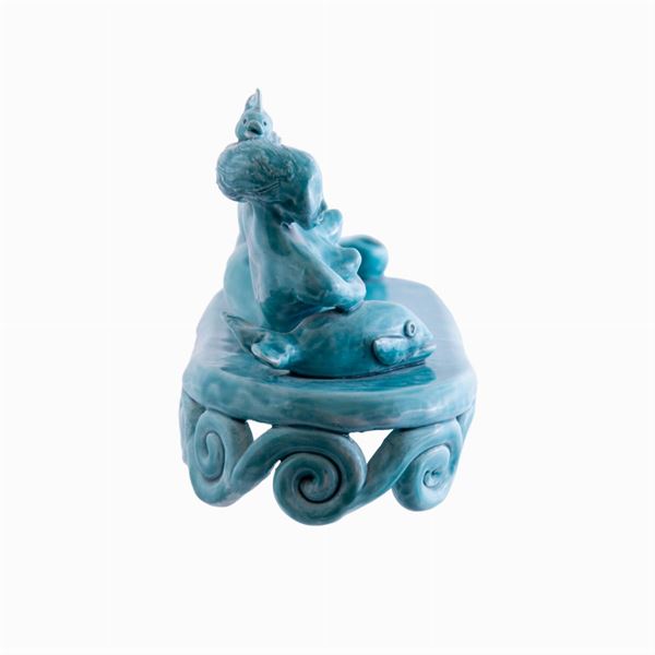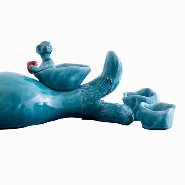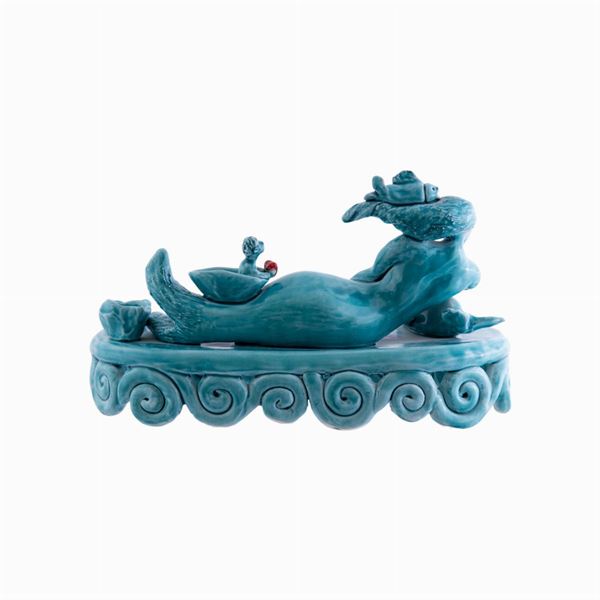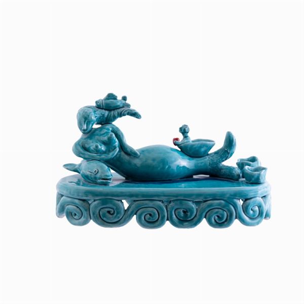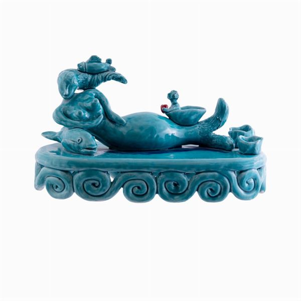 Scultura in ceramica con cristalline e colori.
