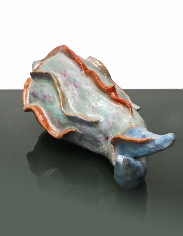 Terracotta smaltata e invetriata con foglia oro.