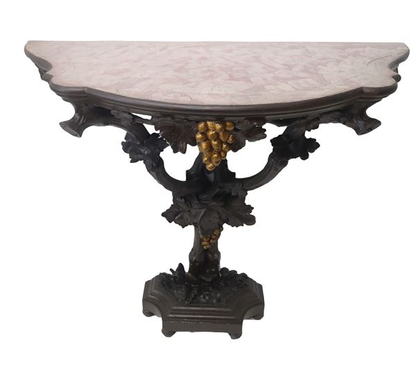 Console in legno intagliato a foglie di vite., Venezia, fine XIX secolo