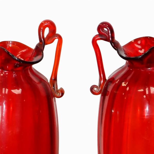 Coppia vasi in vetro di Murano rosso