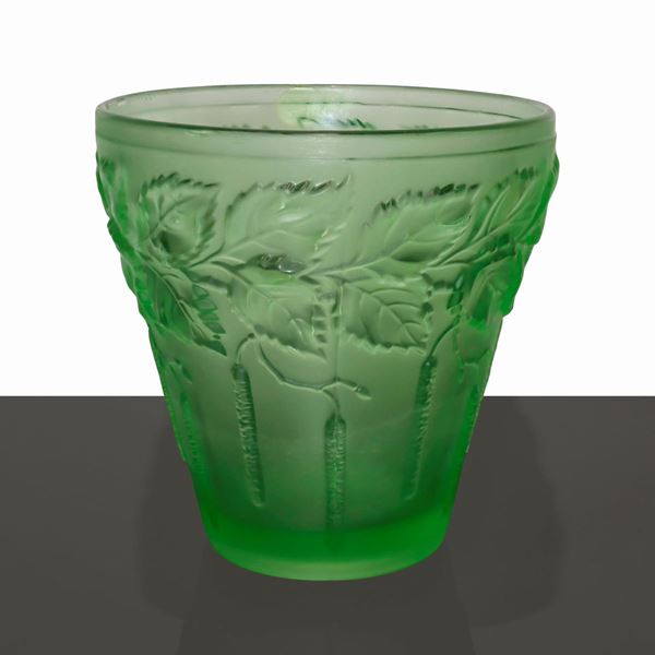 Vaso Barolac in vetro verde Bohemia, FIne XIX secolo