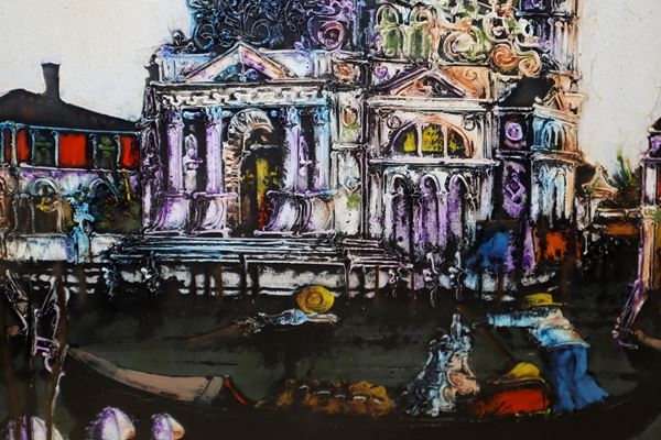 Sul retro timbro ed autentica della Galleria "Russo & Russo, Centro d'arte La Barcaccia, Roma.