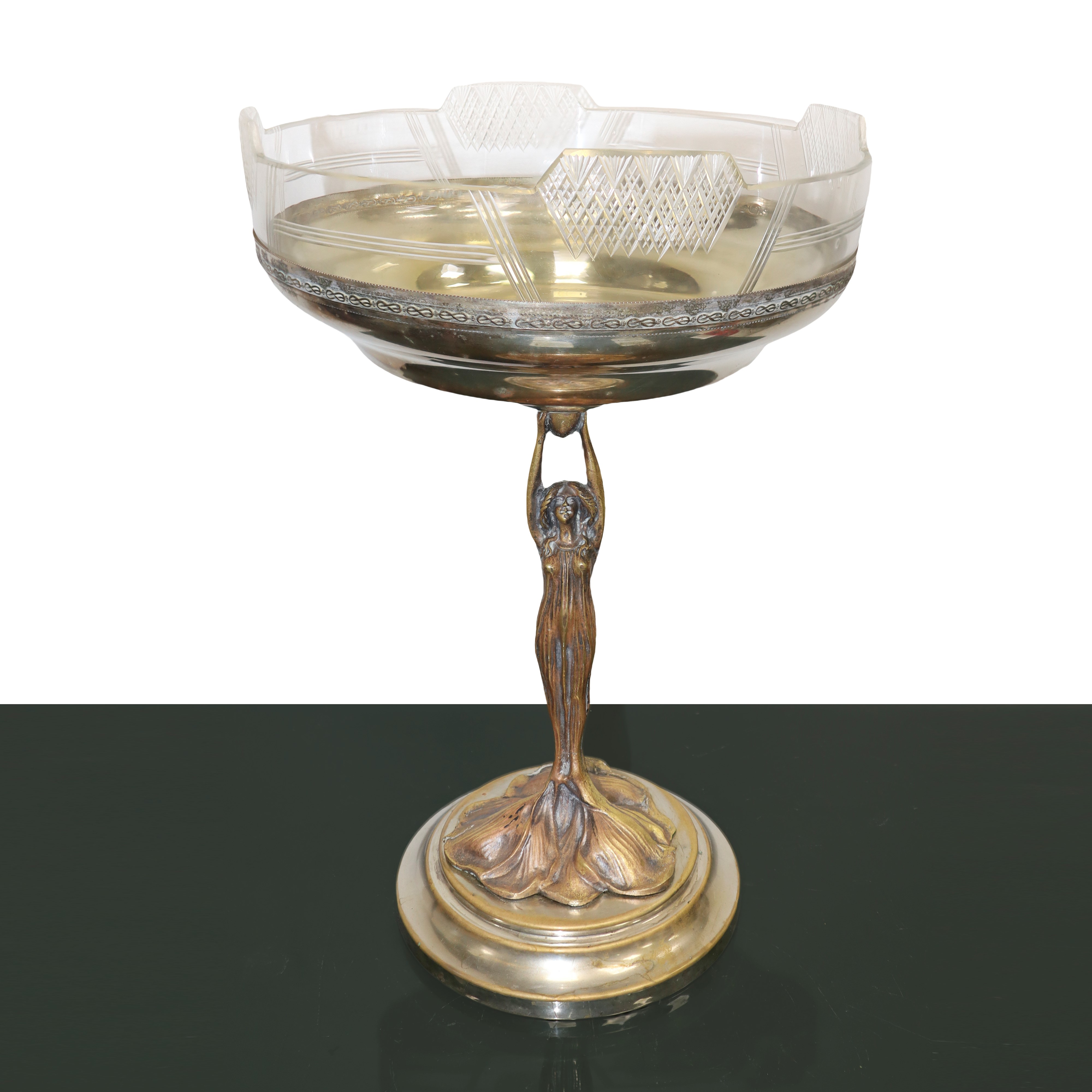 ALZATA IN OTTONE CON SCULTURA DI DONNA, LIBERTY