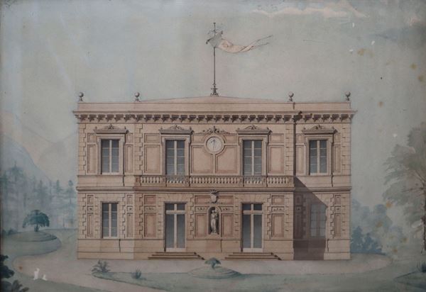 Paesaggio con prospetto del Palazzo Carcaci, XIX Secolo