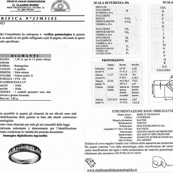 Anello con 13 diamanti taglio baguette rettangolari ct 1,50