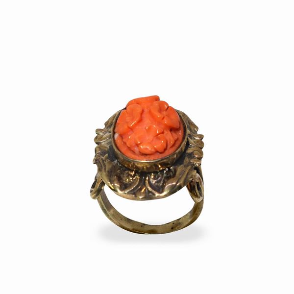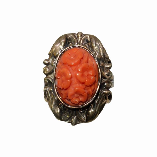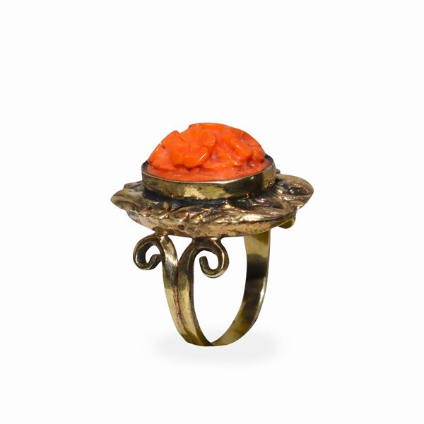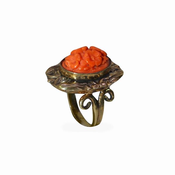 Anello in argento ed oro a basso titolo con fiori in corallo