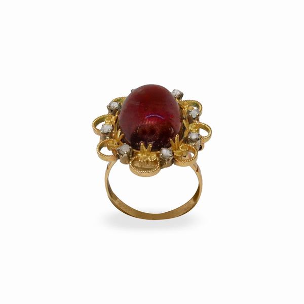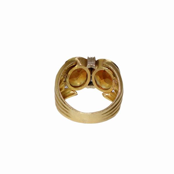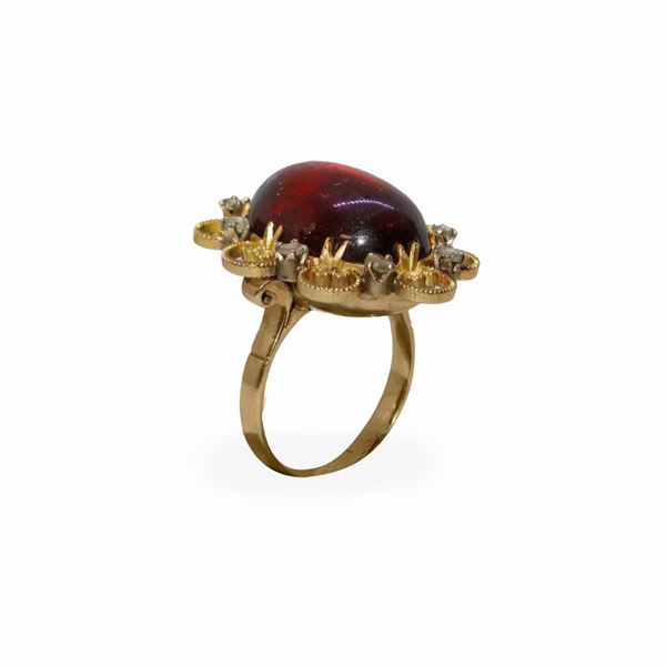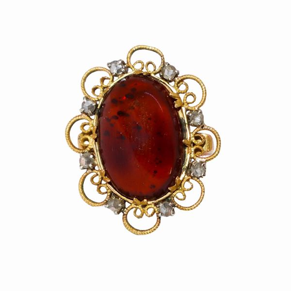 Anello in oro basso titolo e ambra con diamanti taglio brillante