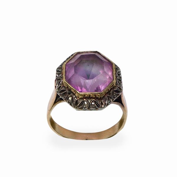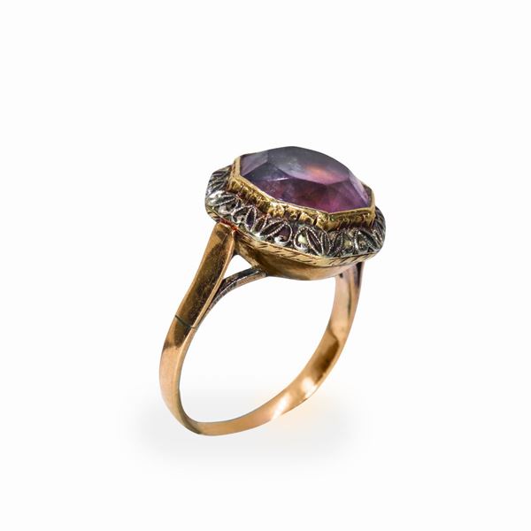 Anello in oro bianco 18 kt e pietra ametista rettangolare