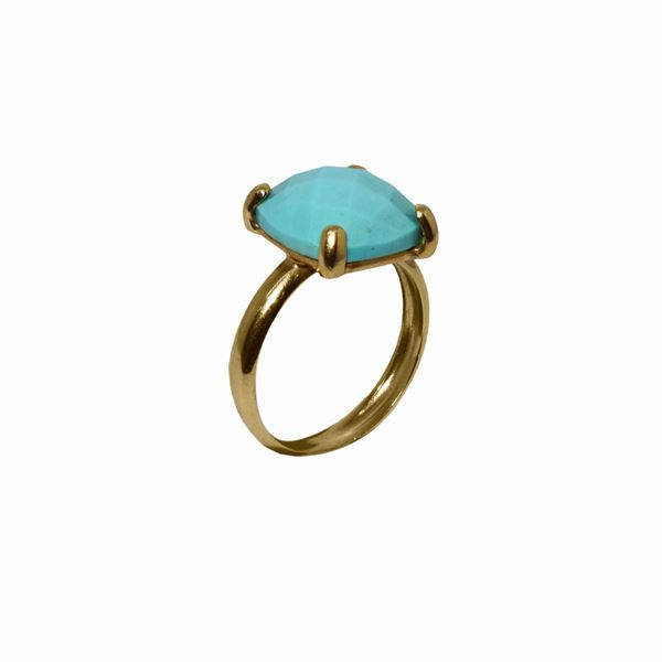 Anello in oro giallo , con pietra turchese sfaccettata