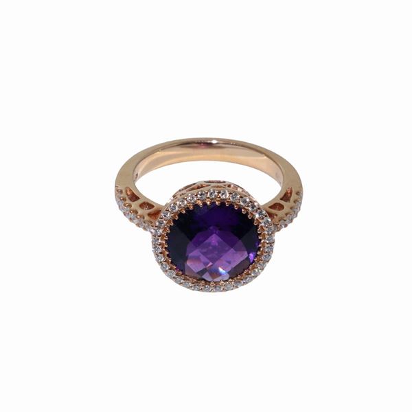 Anello in oro rosso con ametista e diamanti taglio brillante