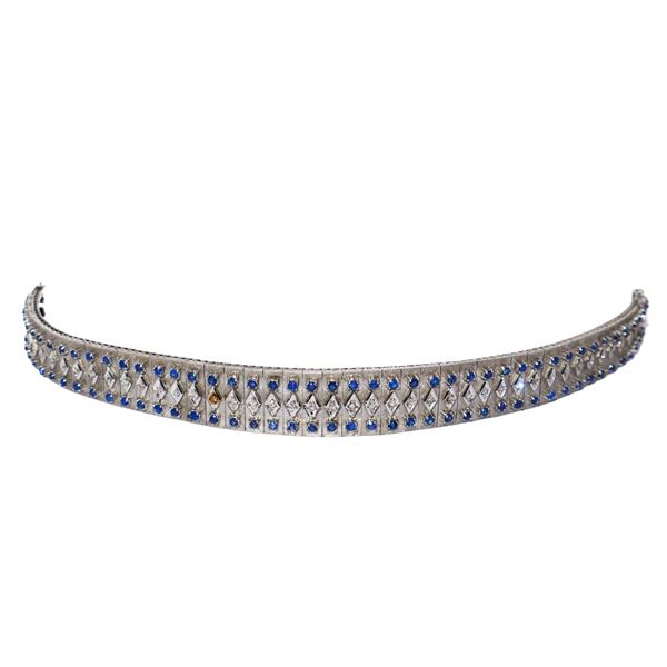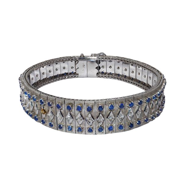Bracciale semirigido in oro bianco con brillanti e zaffiri