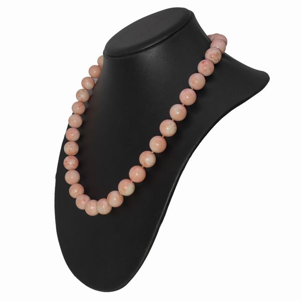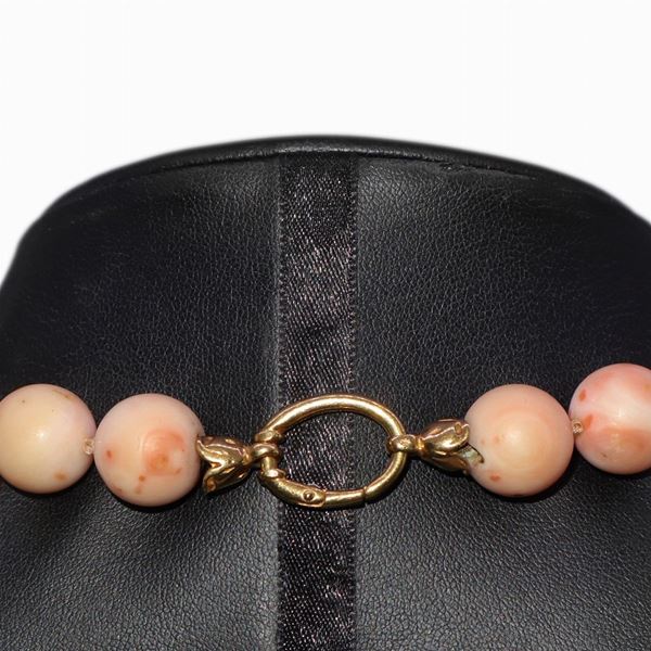 Collana in corallo rosa con susta in oro giallo 18 kt