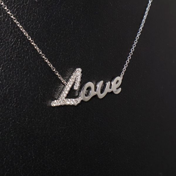 Collana in oro bianco con scritta Love con diamanti taglio brillante