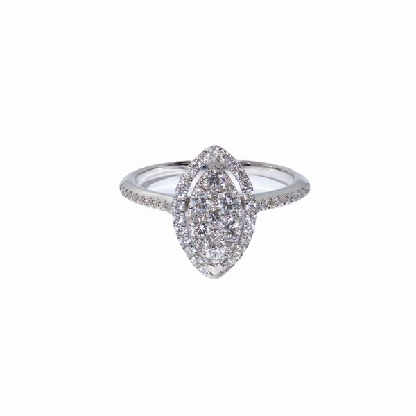 Anello a spoletta in oro bianco e diamanti taglio brillante