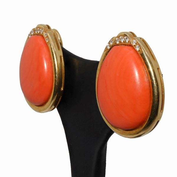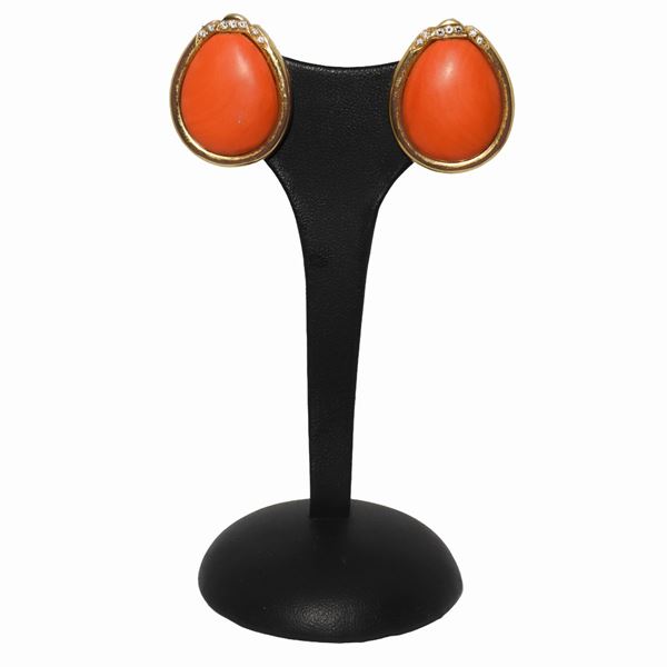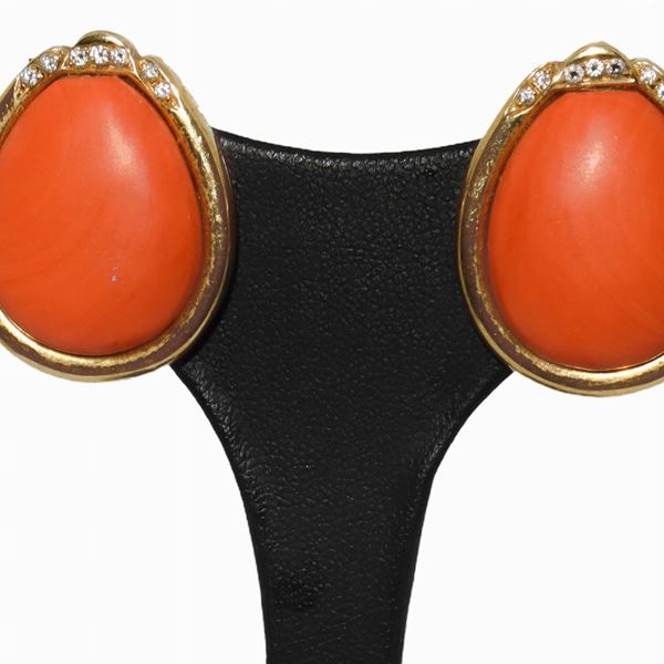 Grandi orecchini in oro 18kt, coralli e brillanti 0,16ct