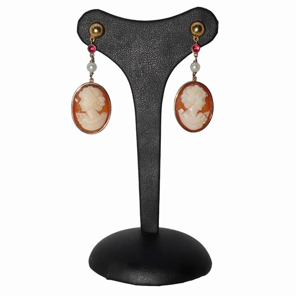 Orecchini in oro giallo con pietre e con pendente cammeo