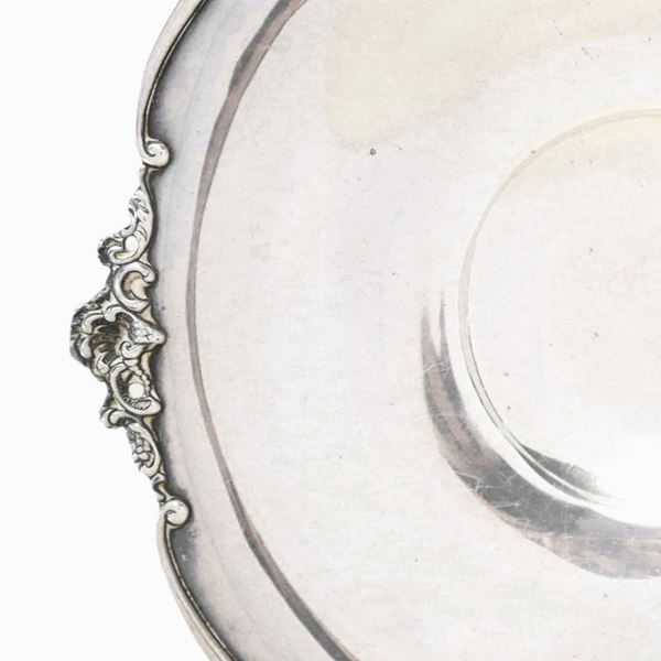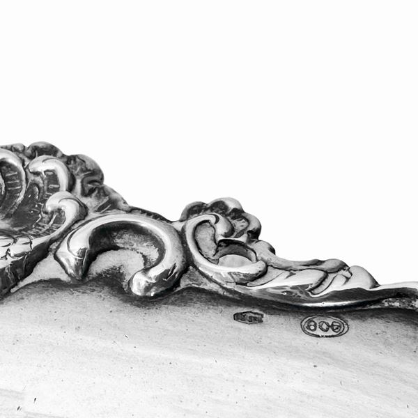 Vassoio in argento cn decoro di anelli nuziali