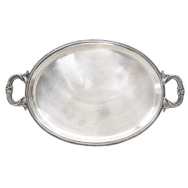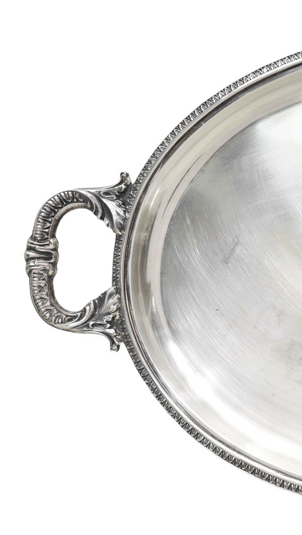 Vassoio ovale in argento con manici cm 50 x 32, g 1192