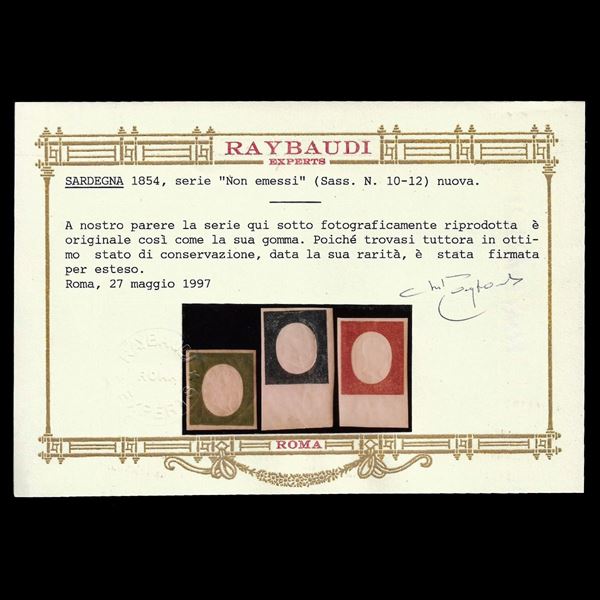 1854 Serie Non emessa. Esemplari nuovi ben marginati. Traccia di linguella assolutamente invisibile. Certificato oro Raybaudi.