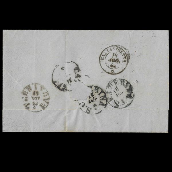 1862, 10 c. bruno rossastro (14Cn) su lettera da Terranova per Catania, 13/8/1862. Cert. Zappalà.