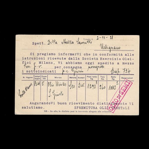 1928. 30 c. verde e bruno, 4° cent.nascita Em. Filiberto e 10° ann. Vittoria (Sass. N. 228) isolato su cartolina postale privata , da Trieste ad Urbignano del 3/11/1928