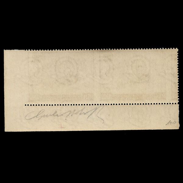 1951, 75° Anniversario UPU, coppia orizzontale non dentellata al centro ed a destra (Sassone 95e)