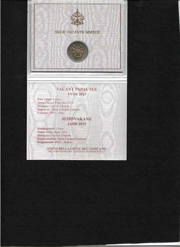 2013. Moneta commemorativa da 2 euro, SEDE VACANTE. Confezione zecca UNC., Italia Regno
