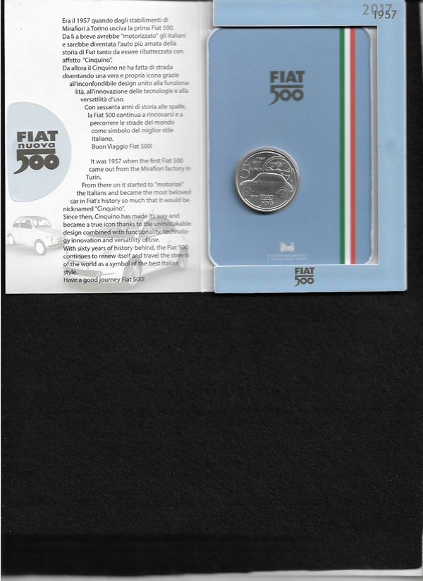 2017, 5 euro commemorativo "Fiat 500" , confezione Zecca UNC