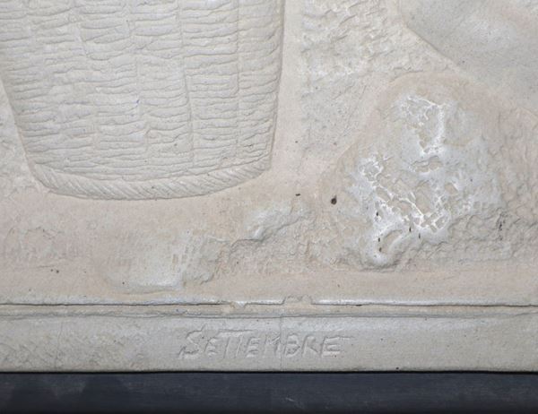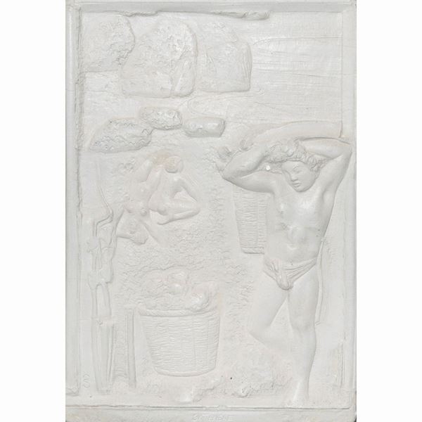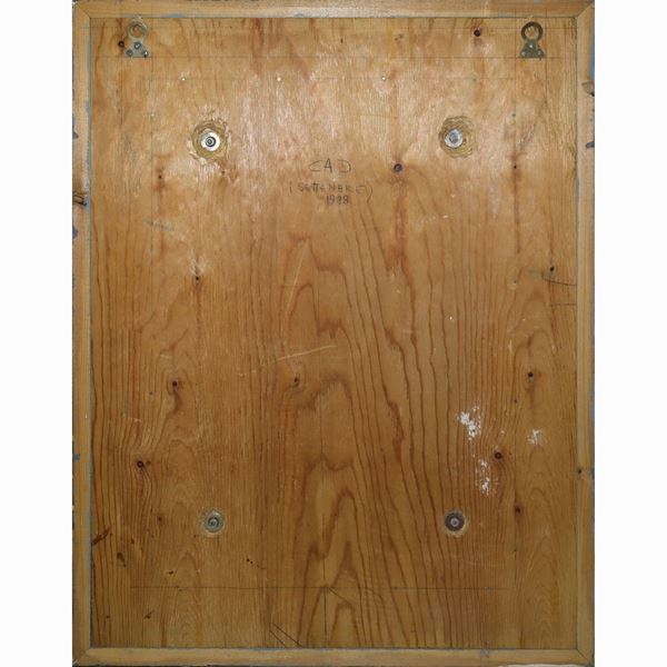 Titolo sul fronte in basso al centro. Monogramma CAD sul fronte a sinistra. Monogramma, titolo e anno al retro.