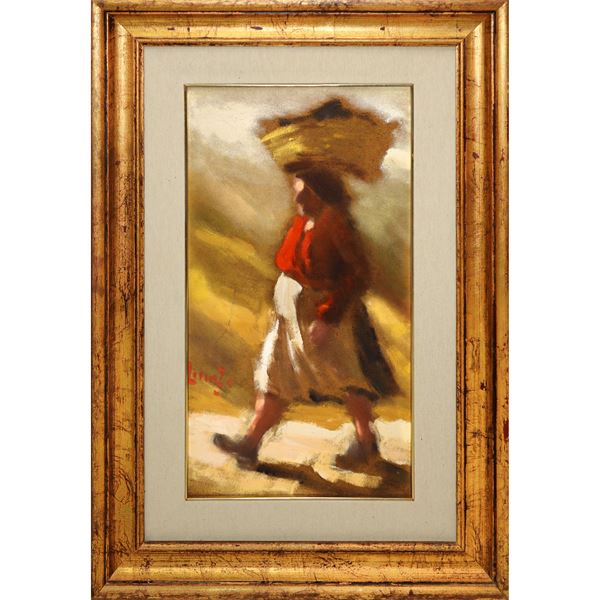 Contadina con cesta in testa